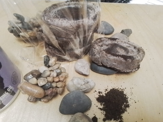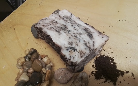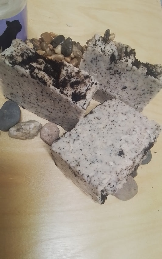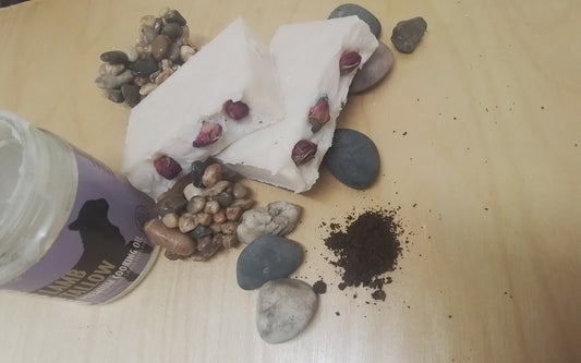 100% sheep tallow and organic 3rd party tested toxin free coffee, medium exfoliating soap putulie, and expresso essential oil hand made with canadian products